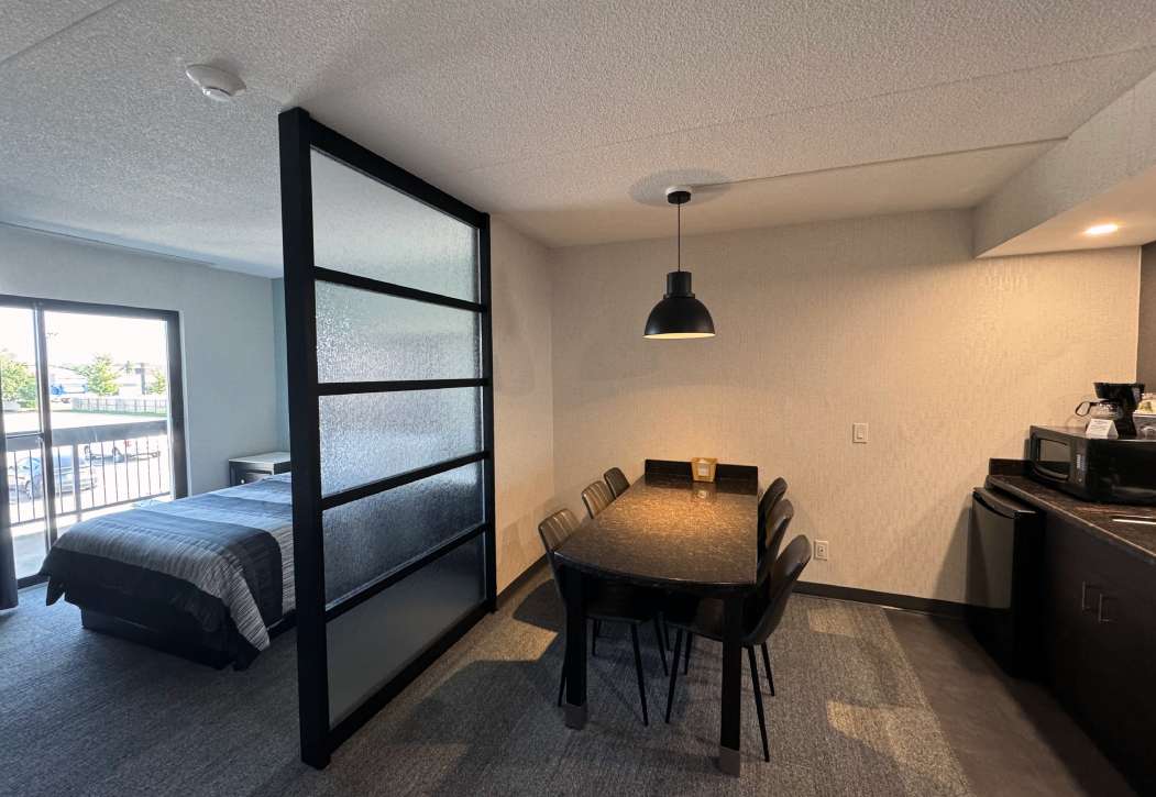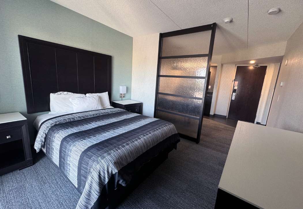 These open concept spacious suites are tastefully decorated offering a king size bed with flat screen television and double whirlpool in the bedroom (style may vary). The living room area has double sofa bed a second flat screen television and sitting area. Suites are also equipped with mini fridge, microwave, coffee maker and hairdryer. These suites will suit a couple looking for a romantic getaway as well as families looking for a larger room and upscale atmosphere. Receive up to 4 Unlimited Passes for Waves Indoor Waterpark when you reserve this room. Please note that a rollaway cot is not available to be added to this room.