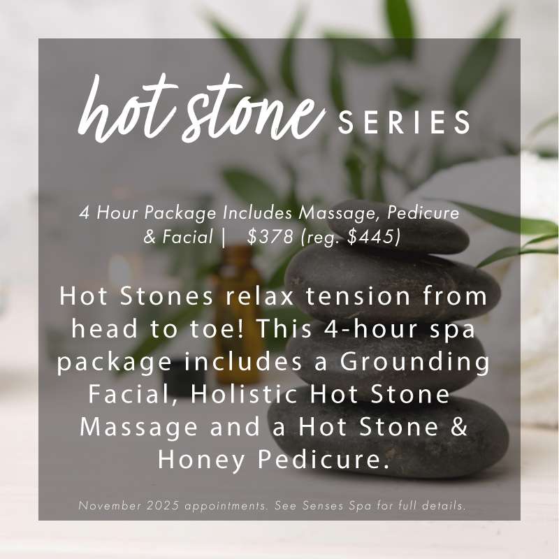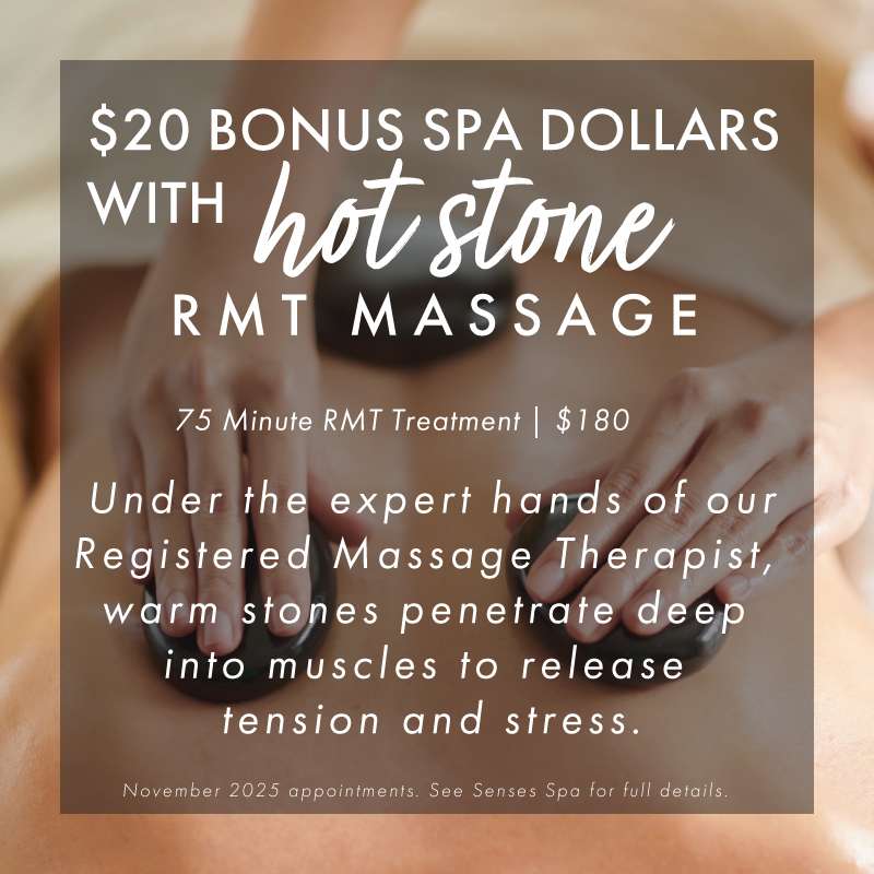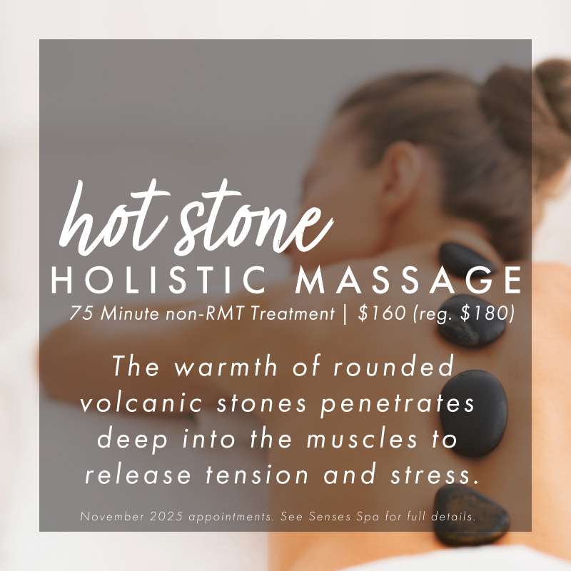 It may be cooling down outside, but it is toasty and warm at Senses Spa! Sooth and relax your muscles from head to toe with exclusive savings on your favourite hot stone treatments!