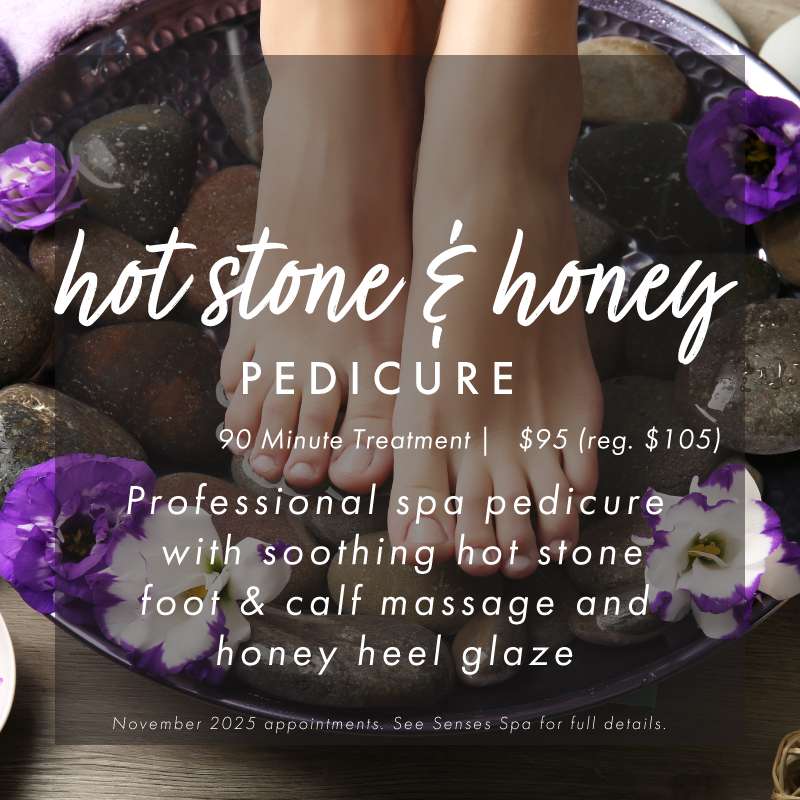 *All November Senses-ations are available for November 2025 appointments at Senses Spa & Boutique. Offers cannot be combined with any other promotion or offer. See Senses Spa staff for full details.